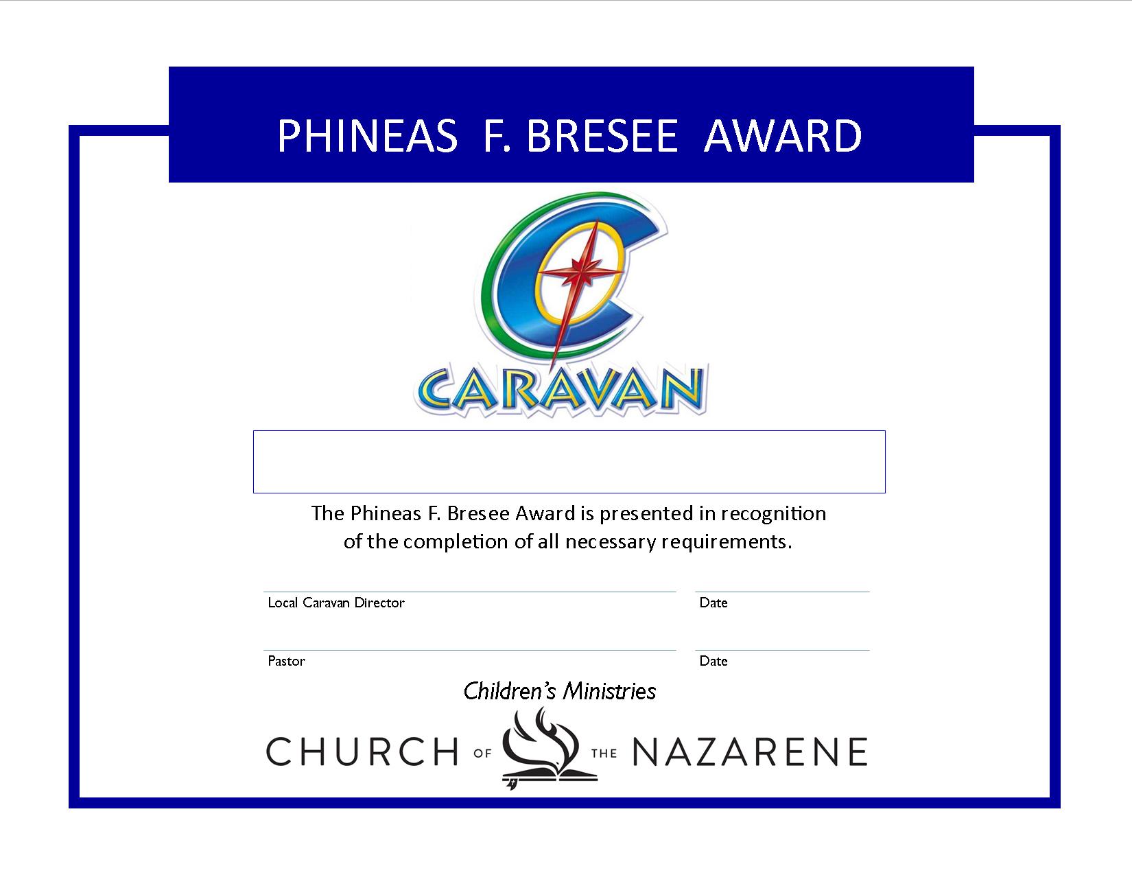 Phineas F. Bresee Award Certificate