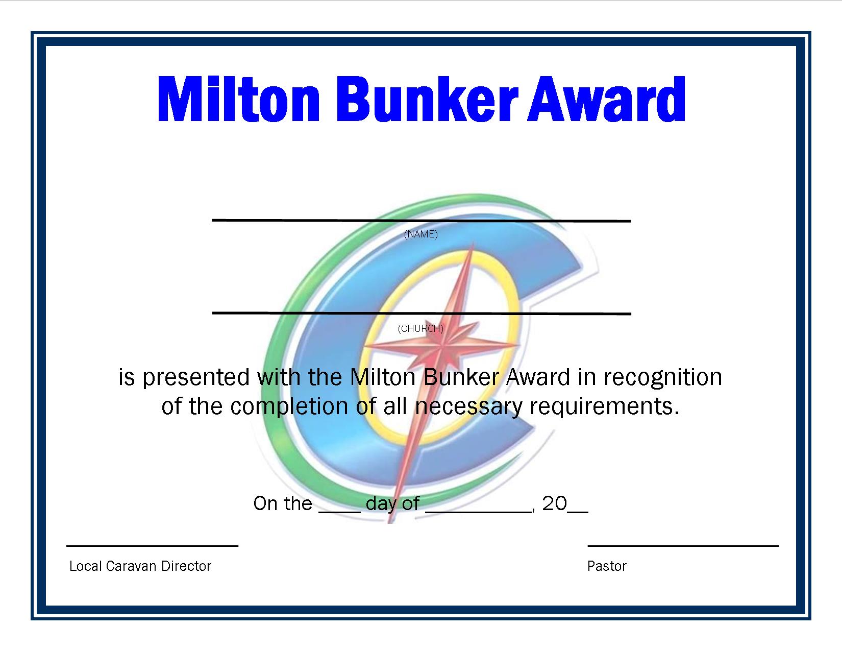 Milton Bunker Award Certificate