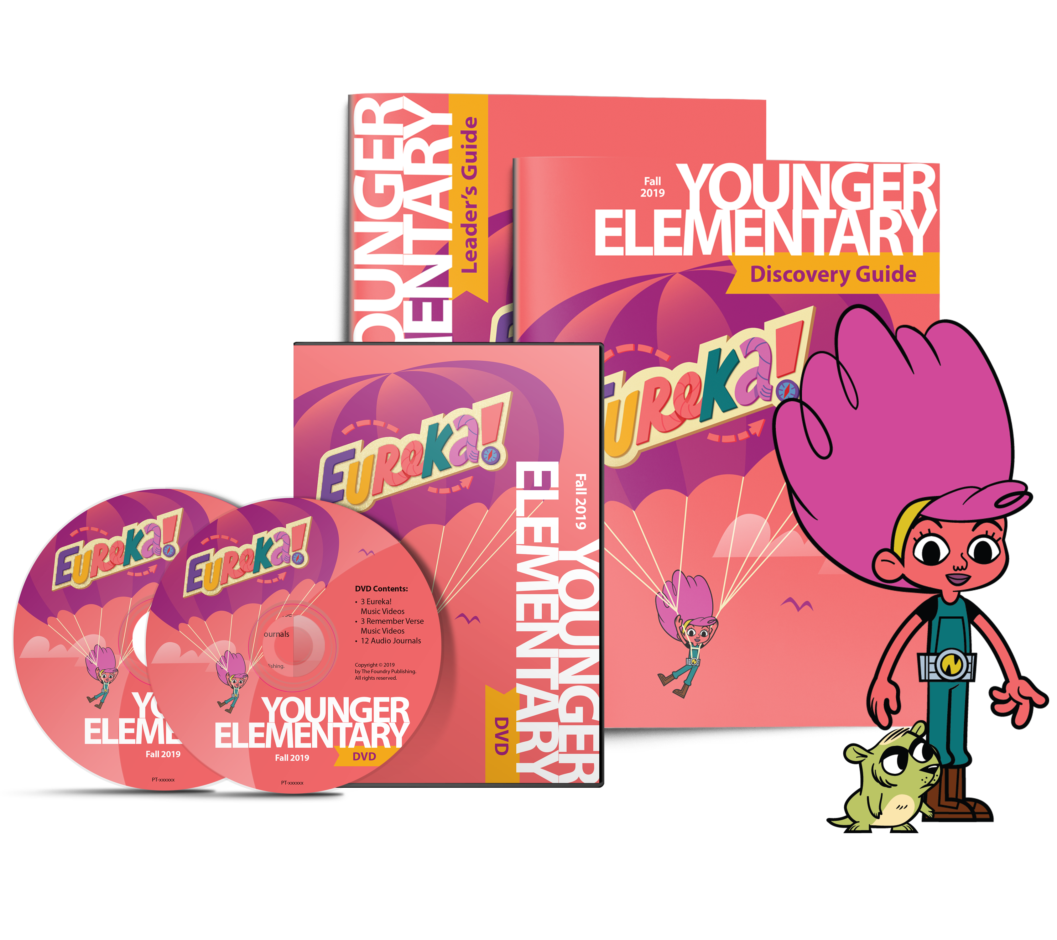 Kai and Scout need help as they explore. These two raccoons will be singing songs, telling stories, and helping preschoolers and kindergarteners memorize Scripture. Each week of Eureka! Jr. will engage little ones in exciting faith discoveries.